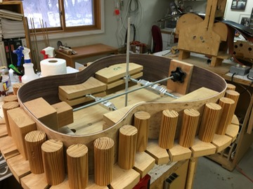 I am finally starting a new build and it is coming along well. A double side Bird’s Eye Maple/Rosewood OM with a Lutz spruce top. I built one of these a couple of years ago and it was a big hit at The Podium. Had kind of a unique sound. I think maybe the Rosewood inner side mellowed out the Maple a bit. Hope to achieve that again.