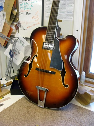 I have a new guitar at The Podium. It is a 17" archtop designed by Twin Cities jazz legend David Roos from the store.