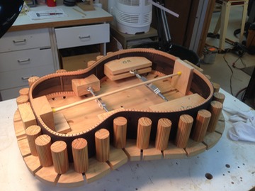 The box is closed on the OM and it has a great tap tone so things are looking good so far. I have been doing a lot of work on a pre WWI Gibson harp guitar. Pictures later.